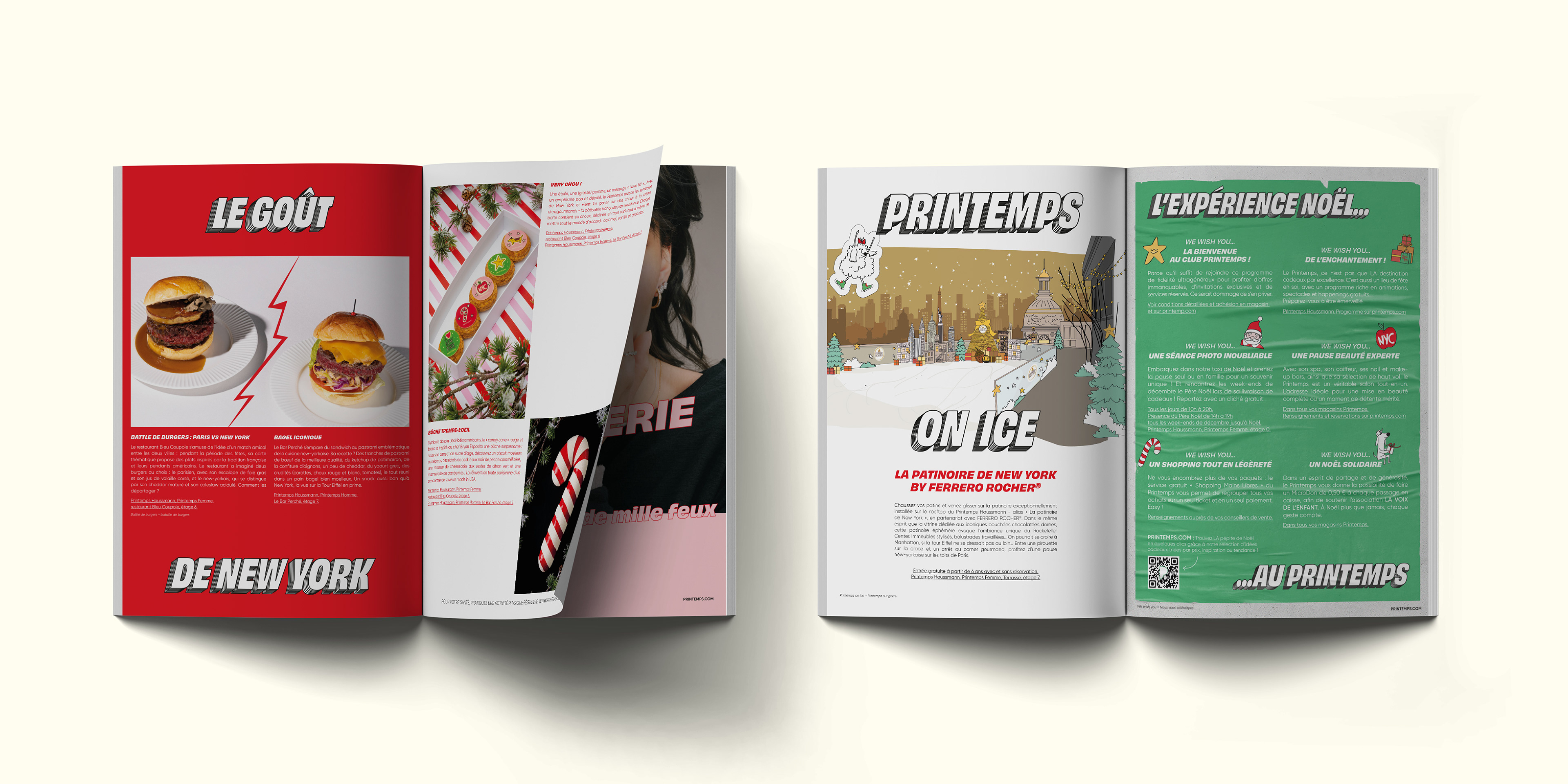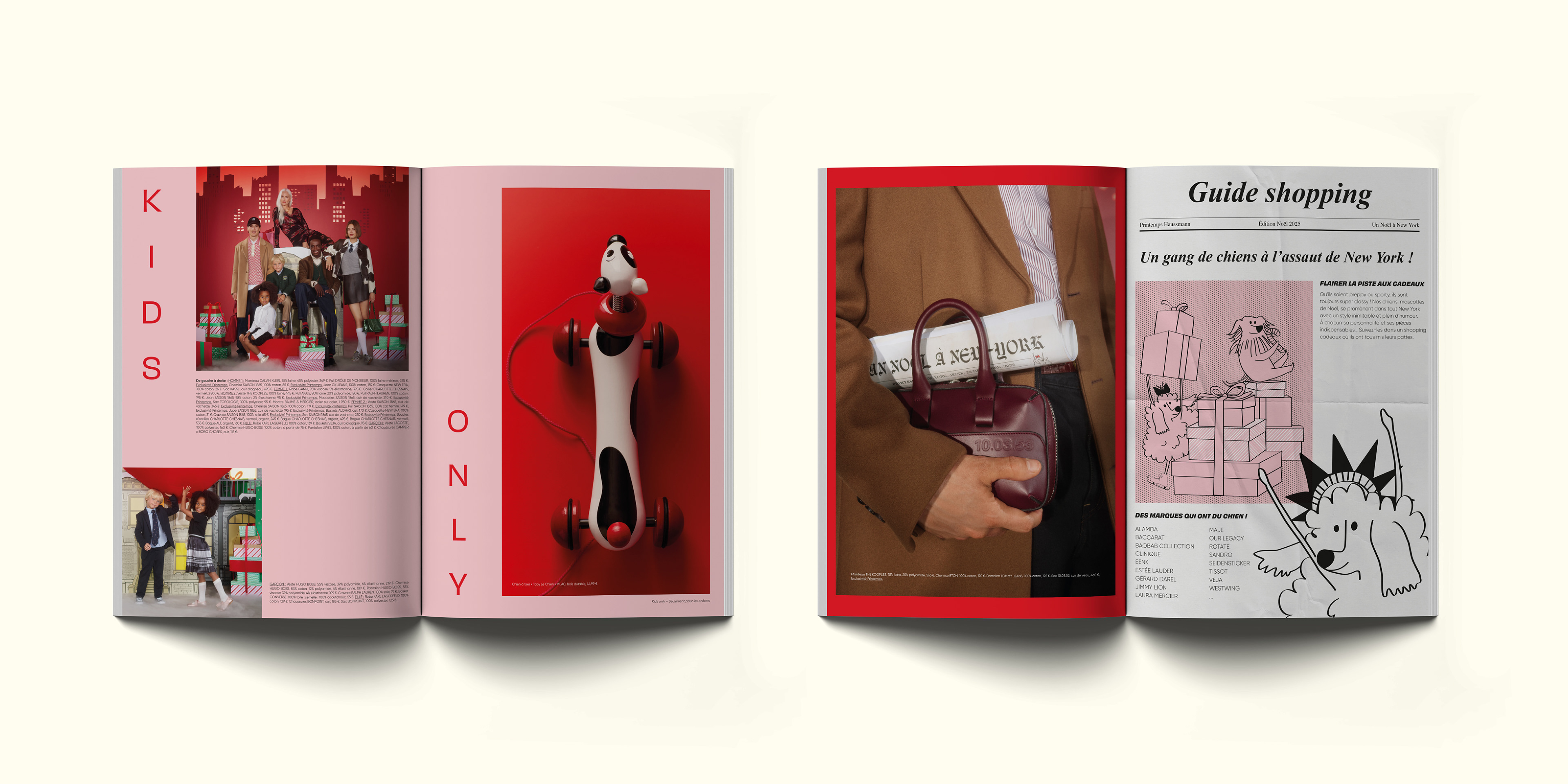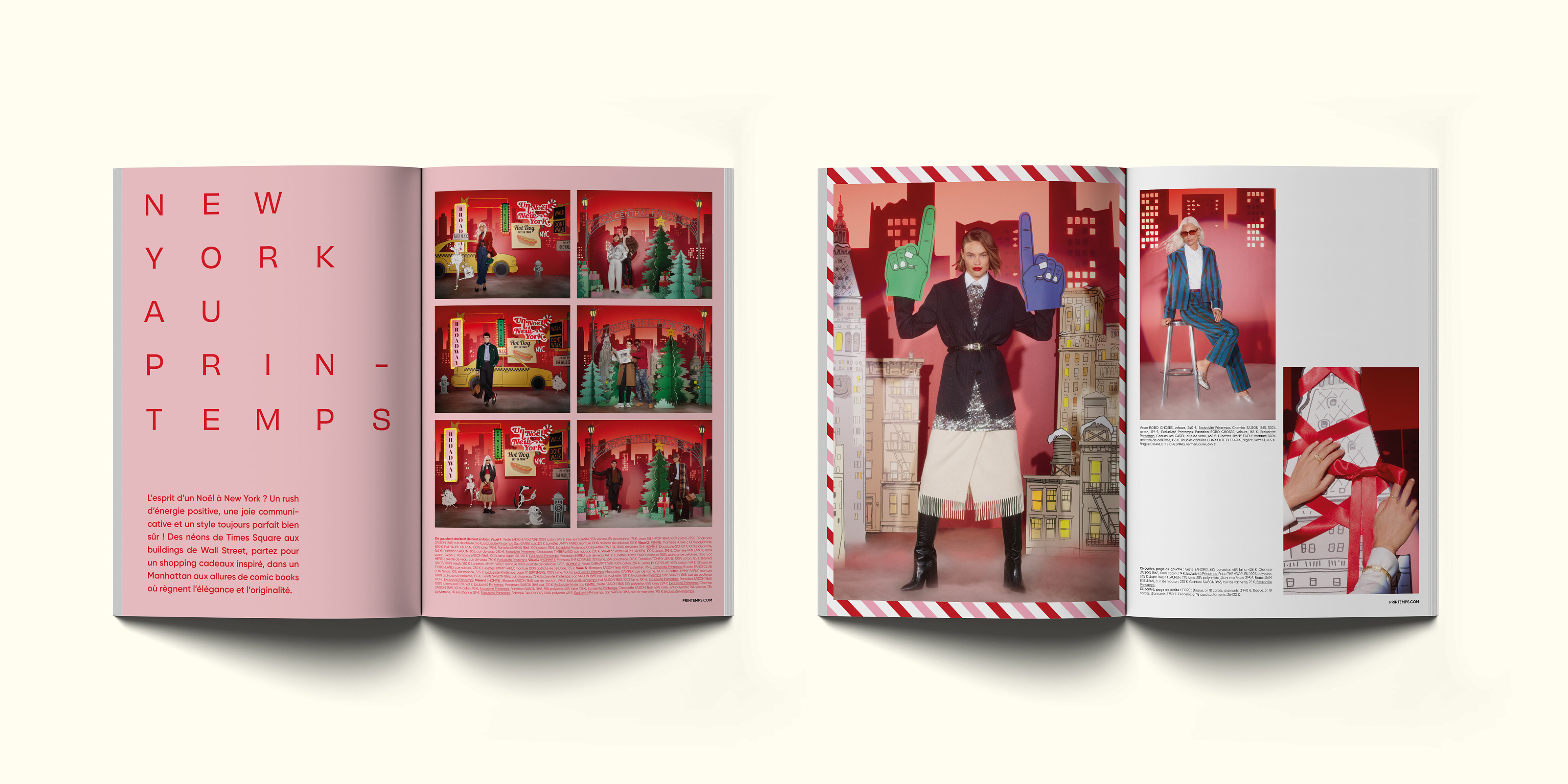 Conception du magazine de Noël du Printemps autour du thème de New York, à l’occasion de l’ouverture de son magasin outre-Atlantique. Élaboration du concept graphique, suivi du shooting, et création de séquences narratives sous forme de bandes dessinées intégrées au guide shopping.